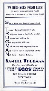 He was an egg candler and inspector when he first came to the United States, an occupation that had its beginnings in volochisk. In 1919 he started a Butter and Egg business. At first, he went into business with ? Gitnick and later had his own company. The business did ok during the depression and he often gave people food or was able to lend them money. He was also a guest lecturer at Cornell University in 1927..3