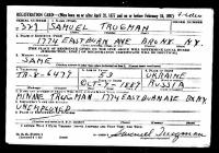 - [S187] "Italian Genealogical Group: Marriage Records Index NYC," database index , Record of Samuel Trugman, certificate number 2400 Bronx County.