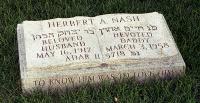 Herbert Arnold Nash died on 3 March 1958 Yonkers, New York, at age 40.7 He died on the Hebrew date of 11th of Adar I.7 He was buried Cedar Park Cemetery, Fairlawn, New Jersey. His headstone reads: Beloved husband, Devoted Daddy; "To know him was to love him". He died much too young.